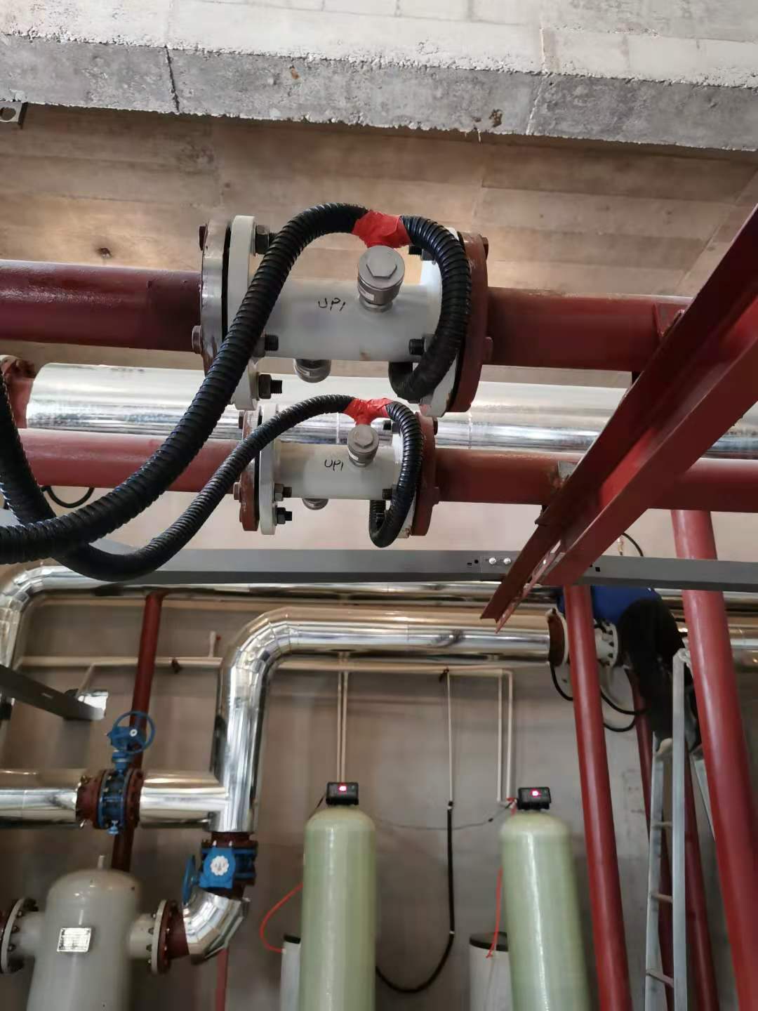 原因分析:超声波流量计传感器安装在水平管道的顶部和底部,沉积物干扰超声波信号。